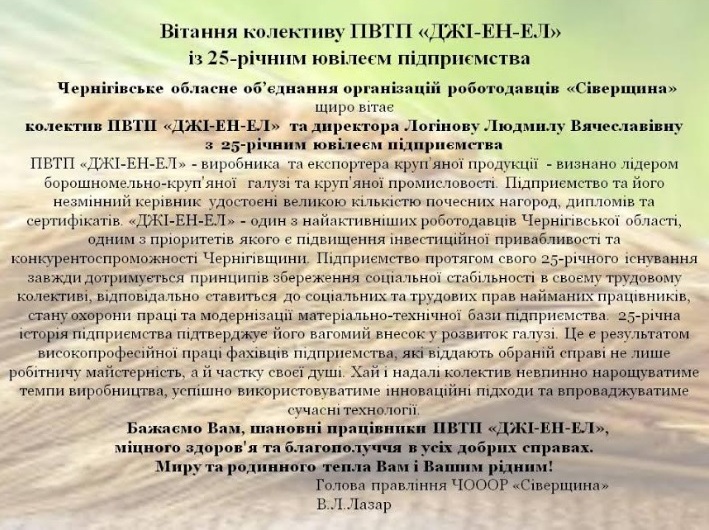 Union is strength! We managed to have both feet on the floor and we will do our best that our enterprise will be spoken about, as about the reliable company from Ukraine which feeds with the production the whole world.