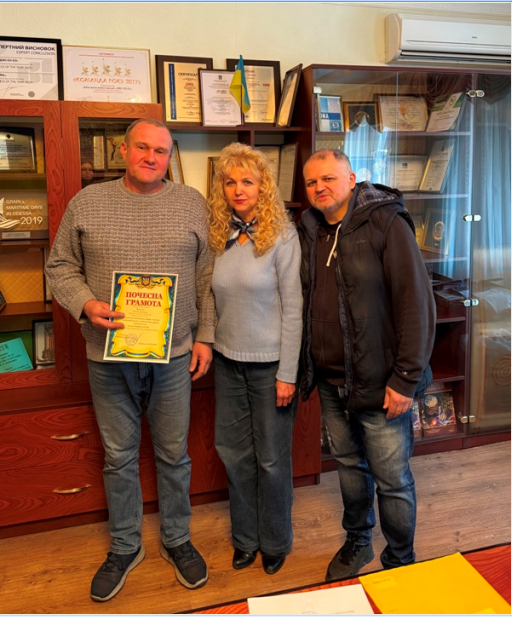 Certificates of honor for conscientious productive work, significant personal contribution to the work of the enterprise and high professionalism, the administration of PPTE "JNL" awarded accountant Naumchik Svitlana, head of the logistics section Pozdniakov Yurii, chief engineer Filippov Serhiy, logistics manager Solianyk Iryna and equipment repair engineer Zheribor Serhiy.