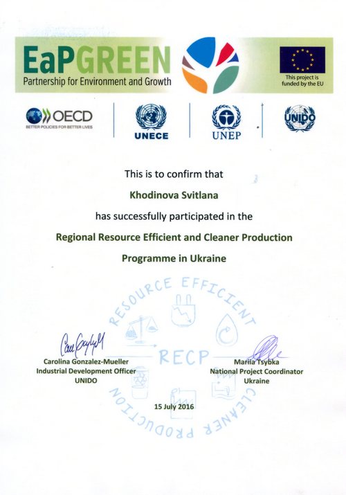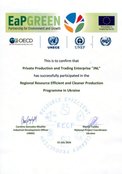 The enterprise “JNL” developed the plan of action on resource efficient and net production and received the certificates confirming participation in this program.